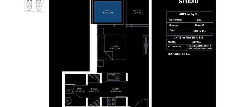 Floors | Type | Suite Area | Balcony Area | Total Area |